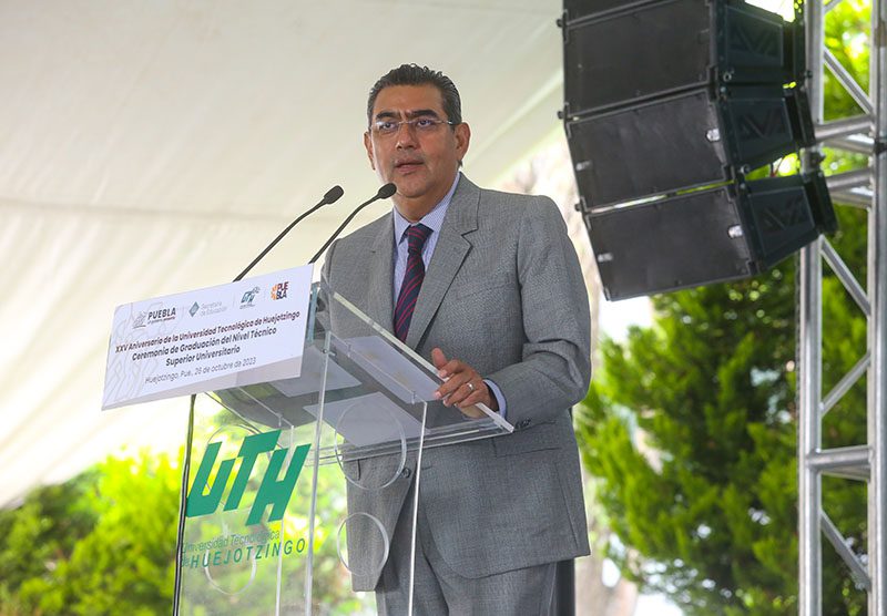 Al encabezar el XXV aniversario de la Universidad Tecnológica de Huejotzingo y la ceremonia de graduación 2023 “Técnico Superior Universitario”, el gobernador Sergio Salomón ratificó el compromiso del gobierno de Puebla con el magisterio, al señalar que las y los maestros son formadores de las nuevas generaciones.