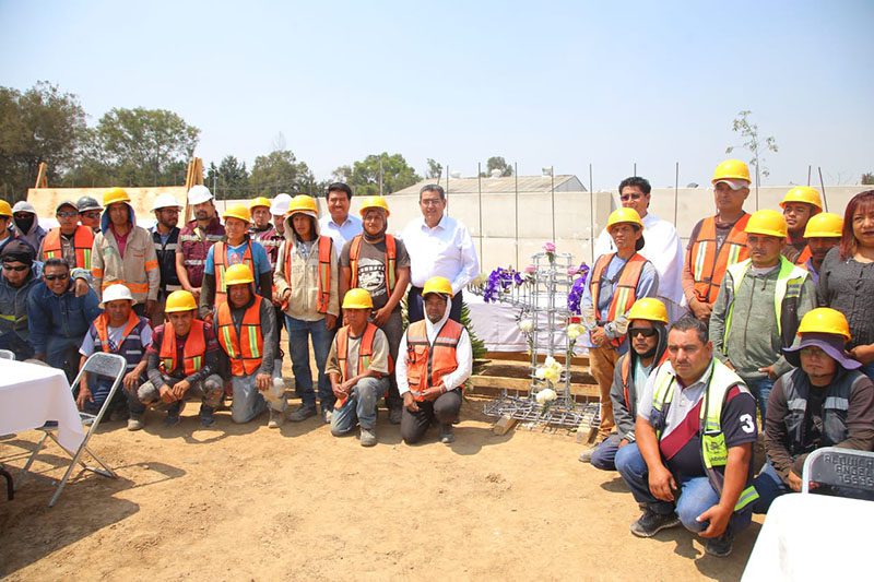 Al visitar una obra en la capital poblana en el marco del Día de la Santa Cruz, el gobernador Sergio Salomón destacó el papel que juegan los trabajadores de la construcción en la economía poblana.