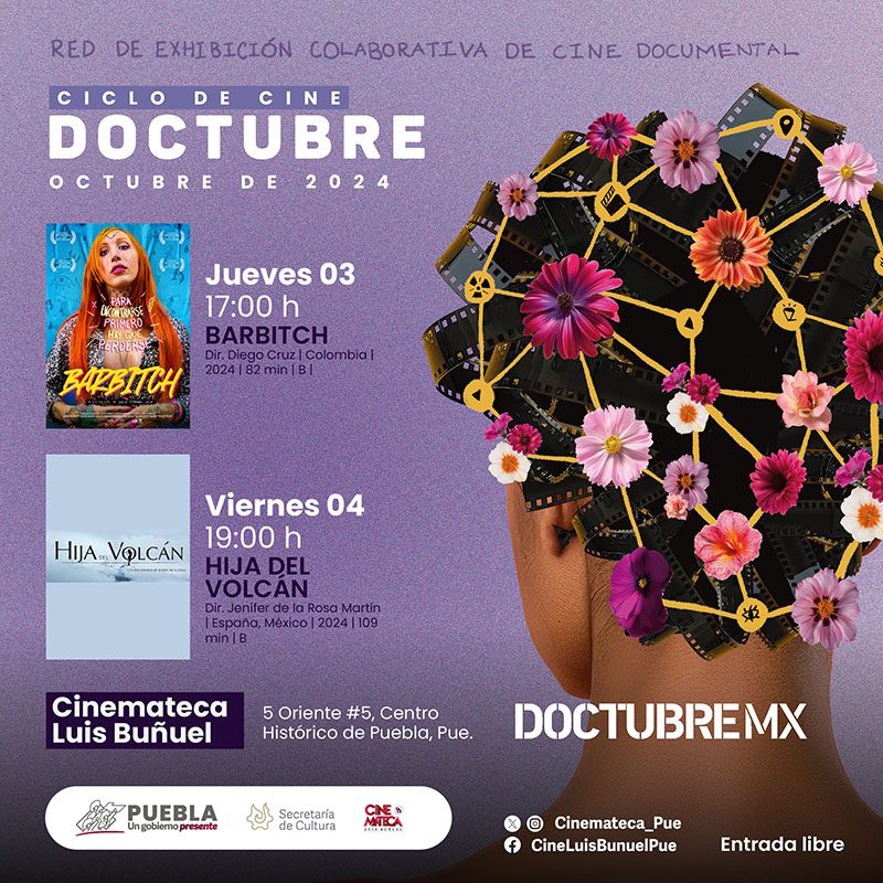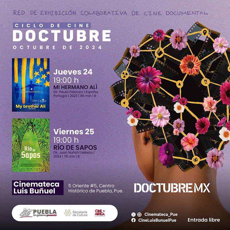 Como parte del Festival DOCSMX, el gobierno presente de Sergio Salomón, a través de la Secretaría de Cultura, programó en la Cinemateca “Luis Buñuel” la red de exhibición colaborativa de cine documental “DOCTUBRE”, cuyas funciones abarcarán seis filmes producidos en México, España, Colombia, Estados Unidos y Portugal.