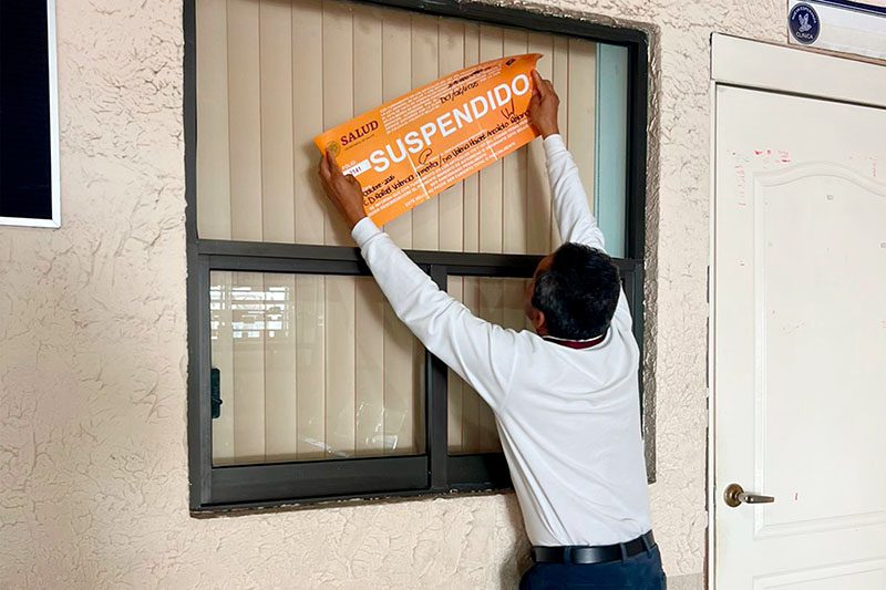 El Gobierno del Estado, a través de la Dirección de Protección contra Riesgos Sanitarios (DPRIS) de la Secretaría de Salud, informa que se ejecutó la suspensión total temporal de trabajos y servicios en la clínica privada Nueva Esperanza, ubicada en la colonia Guadalupe Hidalgo.