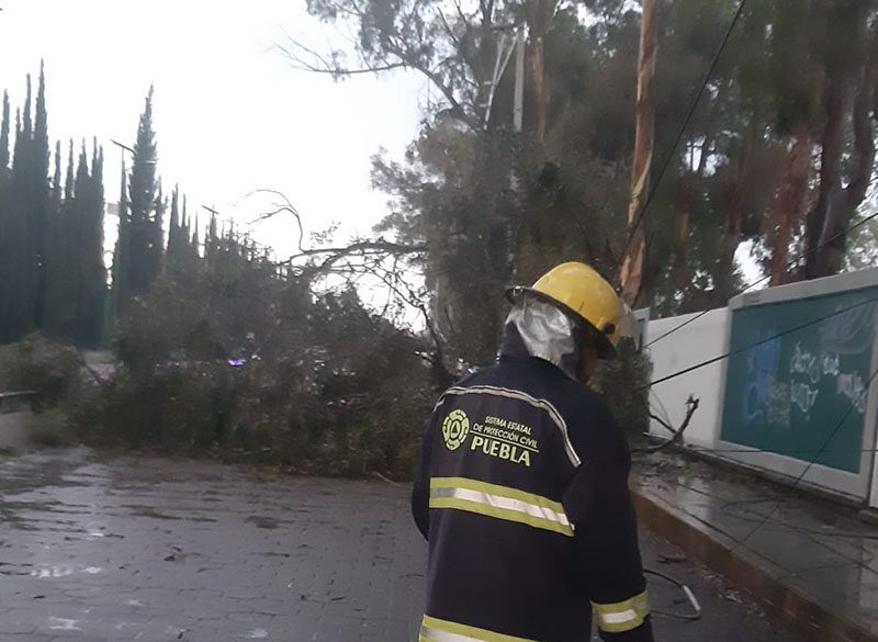 Derivado del fenómeno meteorológico, en la ciudad de Puebla se reportó la caída de un árbol en las inmediaciones de la UTP, así como en la diagonal Cuauhtémoc y Avenida 26 Poniente, Valle Dorado, que fueron atendidos en sinergia con autoridades municipales; asimismo, se registraron encharcamientos menores en el Bulevar 5 de Mayo, y en la Calle 44 Poniente con 9 Norte.