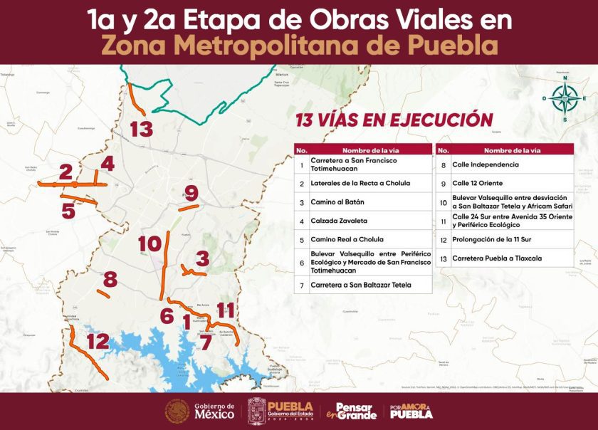Es importante mencionar que entre las calles y avenidas que se tienen programadas en dicha tercera etapa están: Bulevar Atlixco, Lateral de la Autopista Puebla-México, Calle 10 Norte, Diagonal Defensores de la República, Boulevard del Niño Poblano, Calle Gran Avenida, 24 Sur entre 35 Oriente y 26 oriente; Avenida Nacional, Calle 14 Sur, Calle Jesús Reyes Heroles, Avenida Circunvalación, Prolongación Reforma, Camino a la Resurrección, Calle 7 Sur, Boulevard Constituyentes, Calle 7 Norte, Calles de la periferia de la Laguna San Baltazar, 17 Norte; Av. Ricardo Flores Magón, Calle 9 Norte, 80 Poniente y 5 Norte; 16 de septiembre, Avenida 20 sur y finalmente la Calle Mariano Matamoros.