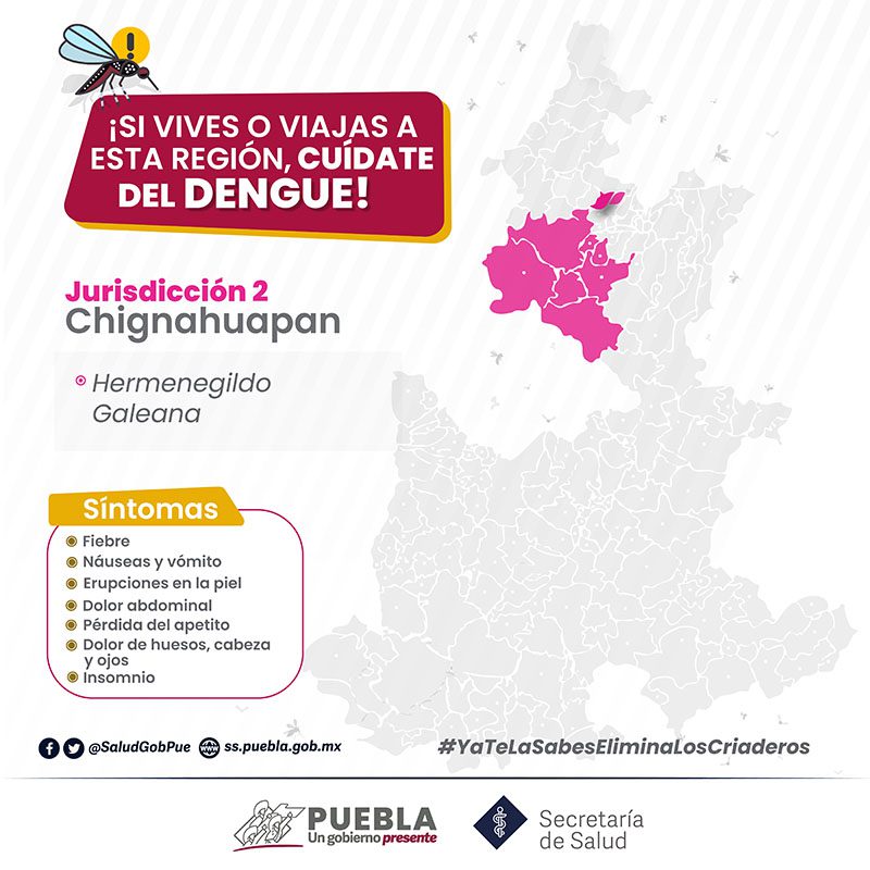 El gobierno presente de Sergio Salomón, a través de la Secretaría de Salud, informa que hay ocho personas hospitalizadas por dengue. Además, al corte del 23 de noviembre, no hubo defunciones por esta enfermedad y continúa en cinco el número acumulado de decesos.