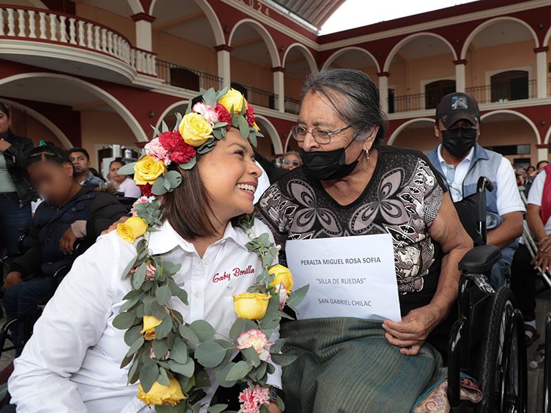 Durante su mensaje desde Zinacatepec, Gaby Bonilla señaló que los bienes entregados darán apoyo a más de 2 mil 300 beneficiarias y beneficiarios, quienes recibirán mejor atención para su rehabilitación, siempre con un trato humanitario y de calidad.