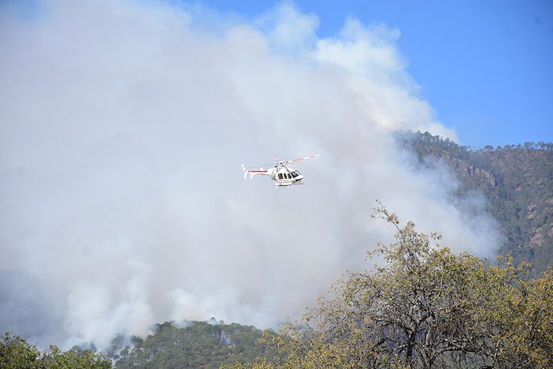 Explicó que las brigadas conformadas por elementos de la SEMAR, SEDENA, CONAFOR, CONANP, Secretaría de Medio Ambiente, Desarrollo Sustentable y Ordenamiento Territorial, así como Protección Civil de los municipios aledaños y voluntarios, realizan brechas corta fuego y para este siniestro, por instrucción del mandatario estatal, Alejandro Armenta, se cuenta con dos helicópteros del gobierno que realizan descargas de 300 a 500 litros de agua, pues las fuertes ráfagas de viento reactivaron el fuego que ya se había liquidado.