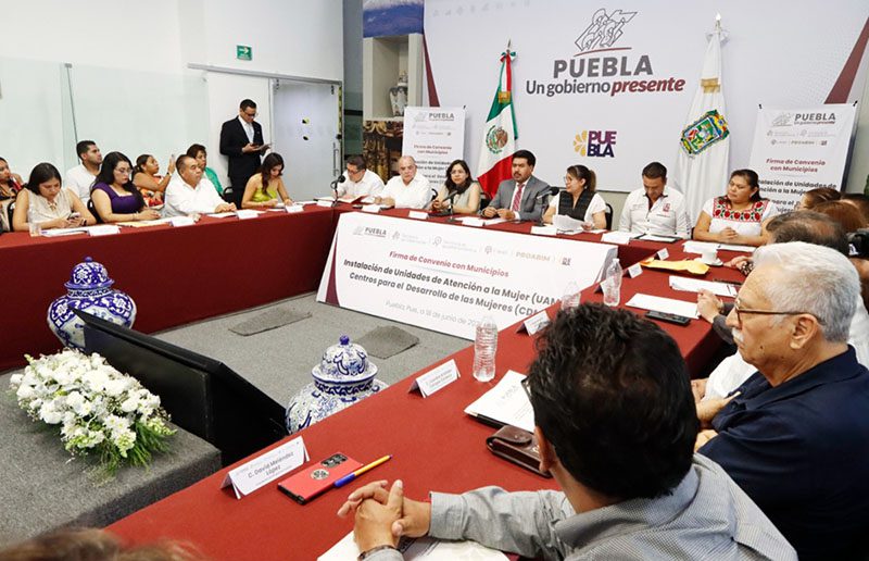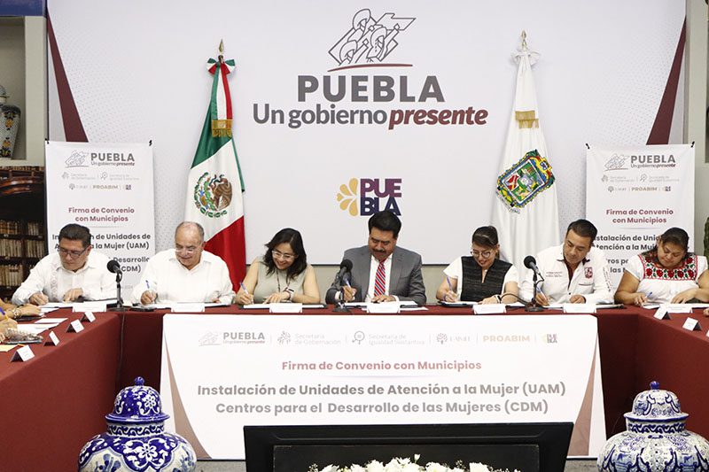 Para fortalecer la coordinación interinstitucional a favor del bienestar de las poblanas, el gobierno presente de Sergio Salomón, a través de las secretarías de Gobernación (SEGOB) e Igualdad Sustantiva (SIS), llevó a cabo la Firma de Convenio de Colaboración con municipios que cuentan con la Declaratoria de Alerta de Violencia de Género contra las Mujeres (DAVGM), para la instalación de las Unidades de Atención a la Mujer (UAM) y los Centros para el Desarrollo de las Mujeres (CDM).