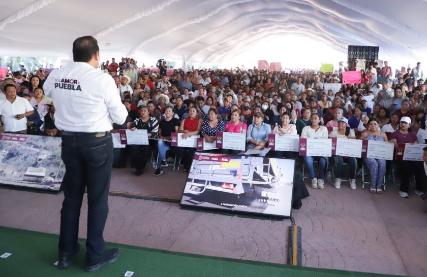 Mientras que la señora Emma Ruíz Lezama, beneficiaria del municipio de Tlacotepec de Benito Juárez, explicó que con el recurso recibido en el Programa de Obra Comunitaria, se construirá una unidad deportiva en su comunidad para beneficio de las y los jóvenes y familias de esa comunidad.