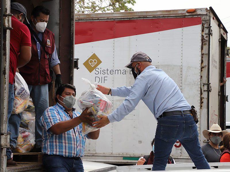 Para optimizar la entrega casa por casa a las personas afectadas, la directora general del SEDIF, Leonor Vargas Gallegos coordinó a las 10 brigadas en las que participó personal del organismo, así como de las secretarías de Gobernación, Salud, Educación, Desarrollo Rural, Trabajo, Medio Ambiente, Infraestructura, Bienestar, Turismo, Cultura y Seguridad Pública.