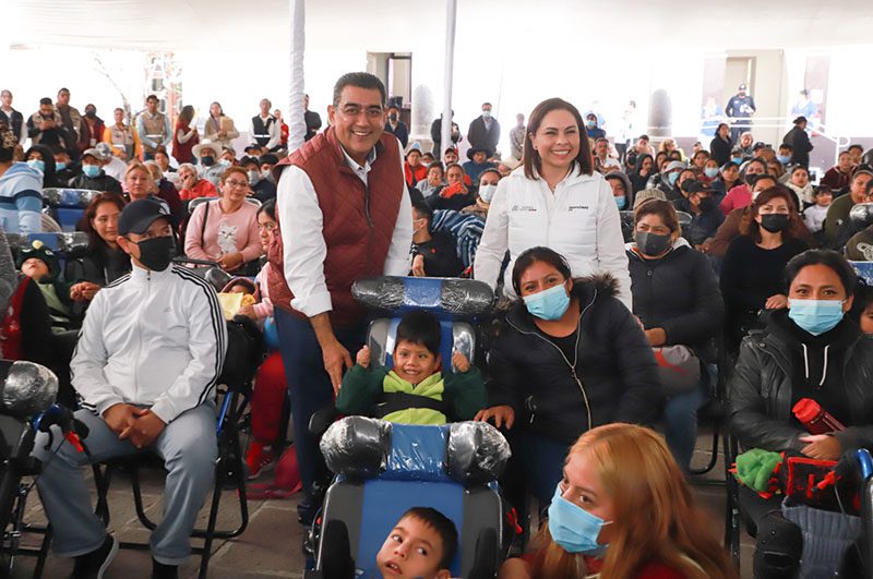 Como muestra del compromiso del gobierno estatal con la población en situación de vulnerabilidad, el gobernador Sergio Salomón y la presidenta honoraria del Patronato del Sistema Estatal para el Desarrollo Integral de la Familia (SEDIF), Gaby Bonilla entregó 204 aparatos ortopédicos en beneficio de los municipios de Puebla, Tehuacán, Atempan y Libres.