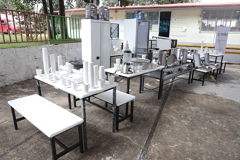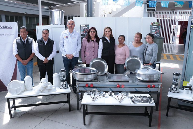 Con el objetivo de contribuir en la sana alimentación de niñas y niños, el gobierno presente de Sergio Salomón, a través del Sistema Estatal DIF, llevó a cabo la entrega de equipamiento para desayunadores escolares, modalidad caliente, en tres instituciones educativas ubicadas en juntas auxiliares de la capital poblana.