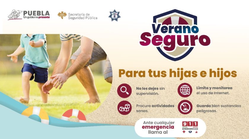 Durante el periodo vacacional que inicia, el gobierno presente de Sergio Salomón, a través de la Secretaría de Seguridad Pública (SSP), exhorta a las y los poblanos a redoblar medidas de autocuidado para un verano seguro.