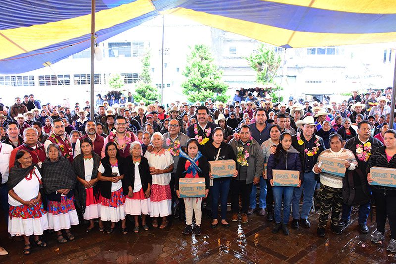 En compañía del subsecretario de Bienestar, Rafael Ramos Bautista, Aquino Limón entregó 19 mil 200 acciones del Programa Integral Alimentario en su modalidad de Producto Lácteo en beneficio de 400 personas, así como 12 módulos avícolas familiares.