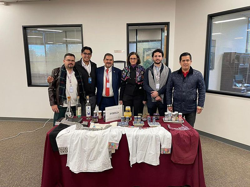 El gobierno estatal, a través de la Secretaría de Economía, informa que emprendedores poblanos participaron en la exposición denominada “Colores, sabores y lugares de nuestro Puebla” en los consulados generales de México en Los Ángeles y San José, California, en Estados Unidos, con productos como talavera, mezcal, miel, sal, prendas bordadas, café, esferas y mole.
