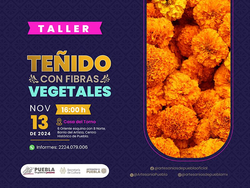 Para fomentar la reutilización del cempasúchil empleado durante la temporada de “Día de Muertos”, el gobierno presente de Sergio Salomón, a través de la Secretaría de Cultura, brindará un taller de creación de tintes sustentables hechos con dicha flor, el cual será gratuito para el público.