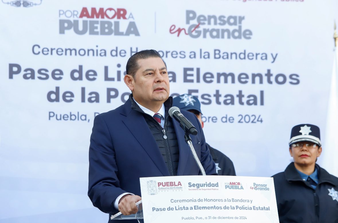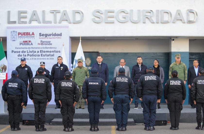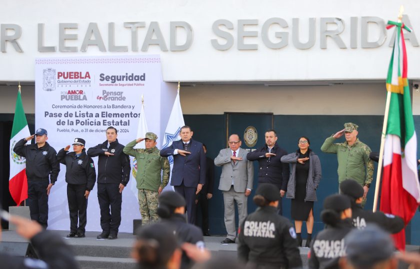 Al encabezar la ceremonia de honores a la bandera y el pase de lista de las y los elementos de la Policía Estatal Preventiva, el gobernador del Estado Alejandro Armenta, destacó que la primera tarea del Estado, es honrar y respetar las leyes para que los cuerpos de seguridad hagan lo propio por amor a Puebla. “Somos un gobierno que pone en el centro de las atenciones los derechos sociales de las personas; la seguridad, la igualdad, la justicia y las garantías individuales”.