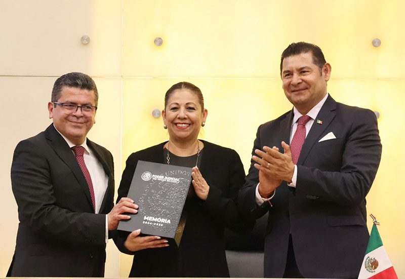 En este contexto, el mandatario reconoció el trabajo que existe por parte del Poder Judicial y Legislativo. “Las y los magistrados, las y los jueces, han hecho una tarea con estricto apego a la ley. Y hoy al rendir cuentas lo hacen con profundo sentido patriótico y amor a Puebla”, sentenció.