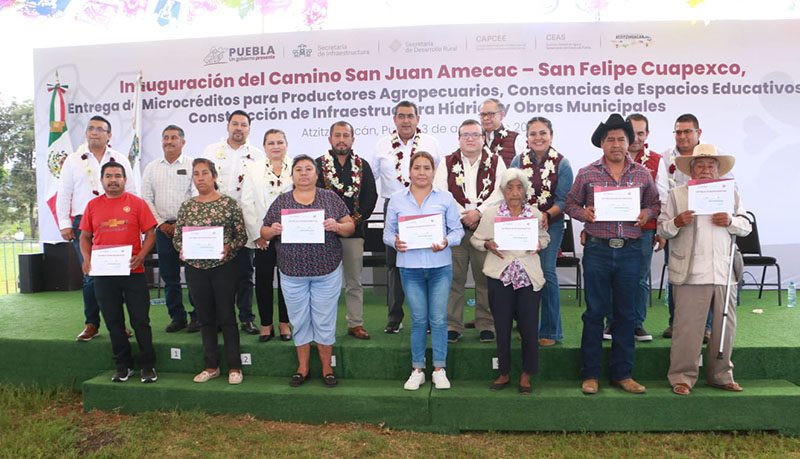 El mandatario presidió la inauguración de la pavimentación del camino San Juan Amecac-San Felipe Cuapexco, así como las entregas de beneficios para el fortalecimiento al campo poblano y de constancias de rehabilitación de espacios educativos, de inicio de obras de la CEASPUE y municipales