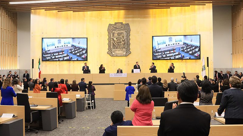 Desde el podio del Congreso, agradeció a todos los diputados a la presidenta de Morena, Luisa María Alcalde, a su esposa, a sus tres hijos, y demás invitados por llegar a la toma de protesta.