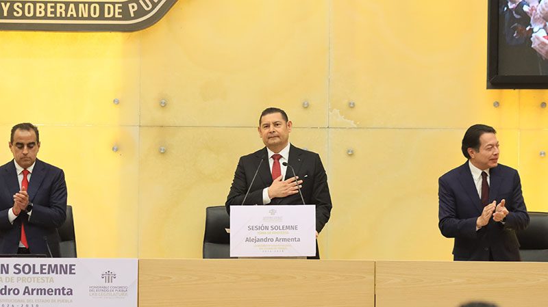 Alejandro Armenta Mier llegó pasadas las 10:00 de la mañana al Congreso del Estado de Puebla, para rendir protesta como nuevo gobernador de la entidad. Al llegar al sitio prometió gobernar con “firmeza” y apego a la ley.