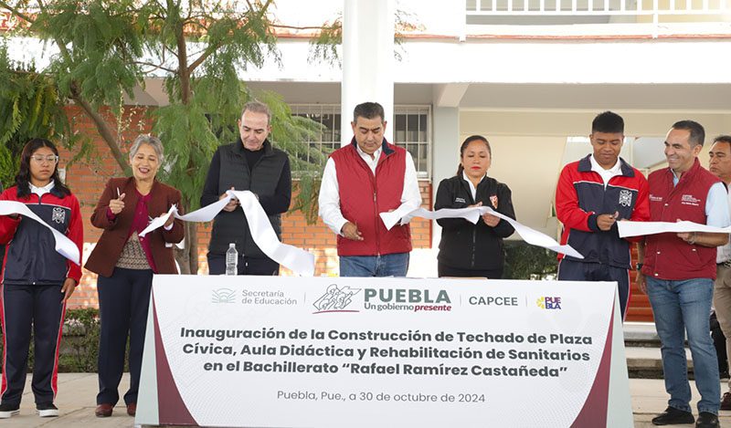Como parte de las acciones que ejecuta el gobierno estatal para mejorar el futuro de las siguientes generaciones y con la finalidad de combatir el rezago educativo, el gobernador Sergio Salomón inauguró la construcción del techado de la plaza cívica en la Escuela Secundaria Técnica número 108 y el techado de la plaza cívica, construcción de un aula didáctica y rehabilitación de los sanitarios del Bachillerato “Rafael Ramírez Castañeda”, ambas instituciones en la capital poblana.