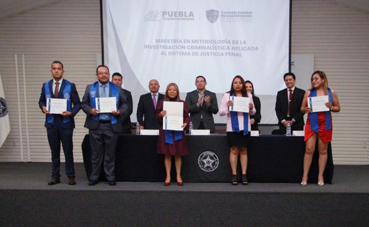 Durante este evento, al que se sumó la secretaria ejecutiva del Consejo Estatal de Coordinación del Sistema Nacional de Seguridad Pública, Liliana Rosas Labastida, las y los graduados recibieron constancias por finalizar las maestrías en “Metodología de la Investigación Criminalística aplicada al Sistema de Justicia Penal” y en “Seguridad Pública”, así como en el doctorado en “Ciencias Policiales y Seguridad Pública”.