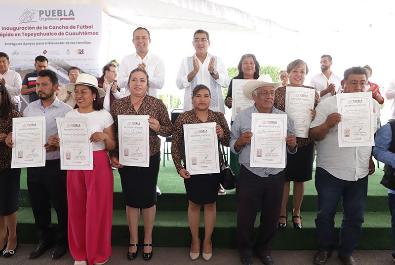 Para fomentar la sana convivencia y la práctica del deporte, así como mejorar la movilidad, el gobernador Sergio Salomón presidió la inauguración de una cancha de futbol rápido y de la rehabilitación del tramo carretero La Colorada – Santa Clara Huitziltepec, además de la entrega de beneficios para el bienestar.