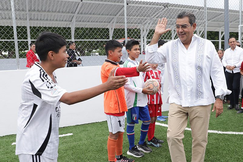 Para fomentar la sana convivencia y la práctica del deporte, así como mejorar la movilidad, el gobernador Sergio Salomón presidió la inauguración de una cancha de futbol rápido y de la rehabilitación del tramo carretero La Colorada – Santa Clara Huitziltepec, además de la entrega de beneficios para el bienestar.