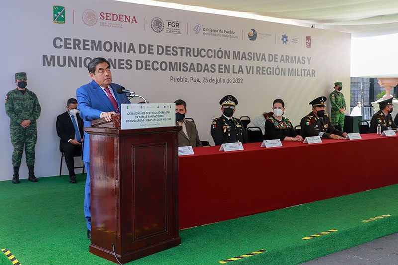 Al asistir a la ceremonia de destrucción masiva de armas y municiones decomisadas por la VI Región Militar, el titular del Ejecutivo local, Miguel Barbosa Huerta afirmó que estos programas del Ejército Mexicano demuestran que la vida institucional en el país está funcionando.