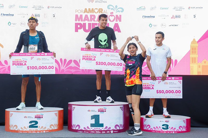En la prueba estelar de los 42 kilómetros 195 metros, los atletas poblanos impusieron condiciones y consiguieron un histórico podio completo.