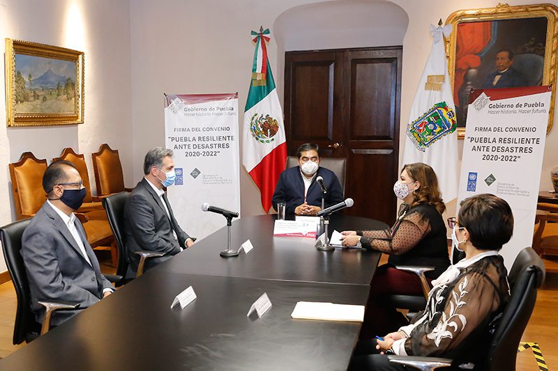 Al señalar que su gobierno tiene una visión moderna y que da importancia al medio ambiente, el gobernador Miguel Barbosa Huerta firmó el convenio “Puebla Resiliente Ante Desastres 2020-2022” con el oficial de Programas de Medio Ambiente y Resiliencia del Programa de las Naciones Unidas para el Desarrollo en México (PNUD), Edgar Rafael González González.