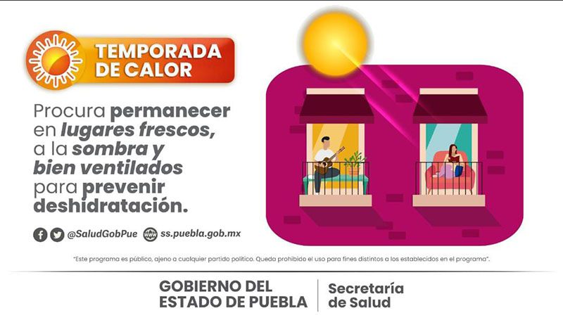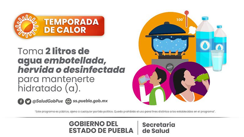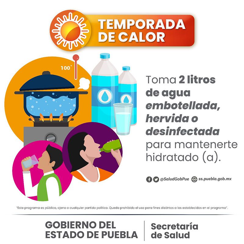 Derivado a la segunda ola de calor que afecta al país, la Secretaría de Salud recomienda a las y los poblanos estar prevenidos para evitar enfermedades diarreicas, deshidratación o golpes de calor.