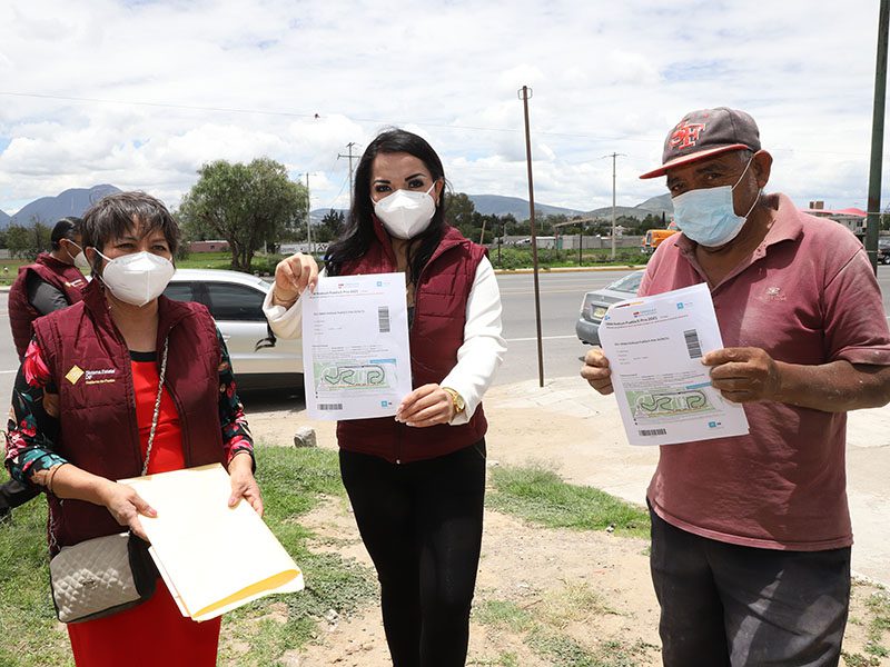 La titular de la Unidad de Apoyo Ejecutivo y Vinculación Social del SEDIF, Cindy Jiménez Lozada, y la secretaria ejecutiva del Sistema de Protección Integral de los Derechos de Niñas, Niños y Adolescentes (SIPINNA), Martha Zárate Tinoco, entregaron casa por casa los accesos a las familias que viven cerca del circuito automovilístico.
