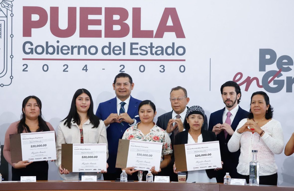 Con el compromiso de fortalecer el sueño poblano y bajo la directriz de la presidenta Claudia Sheinbaum, el gobernador de Puebla, Alejandro Armenta, encabezó la entrega de apoyos económicos a migrantes repatriados para impulsar sus proyectos de emprendimiento. “Nuestras mujeres migrantes son empresarias, son generadoras de empleo, de riqueza, y hoy, por amor a Puebla, piensan en grande”, destacó el mandatario estatal ante líderes migrantes provenientes de Nueva York, Los Ángeles, Passaic y otras regiones.