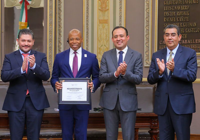 Por ser un firme precursor de la defensa de los Derechos Humanos de las y los migrantes, en especial de las y los poblanos, el gobernador Sergio Salomón presidió la entrega de un reconocimiento al alcalde de la ciudad de Nueva York, Eric Leroy Adams, en el Congreso del Estado.