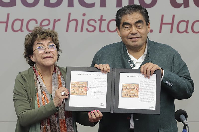 Como parte de las actividades por el 5 de Mayo y en compañía de la directora general del Servicio Postal Mexicano, Rocío Bárcena Molina, el gobernador Miguel Barbosa Huerta presidió la “Cancelación de la Estampilla Conmemorativa por los 160 Años de la Batalla de Puebla”.