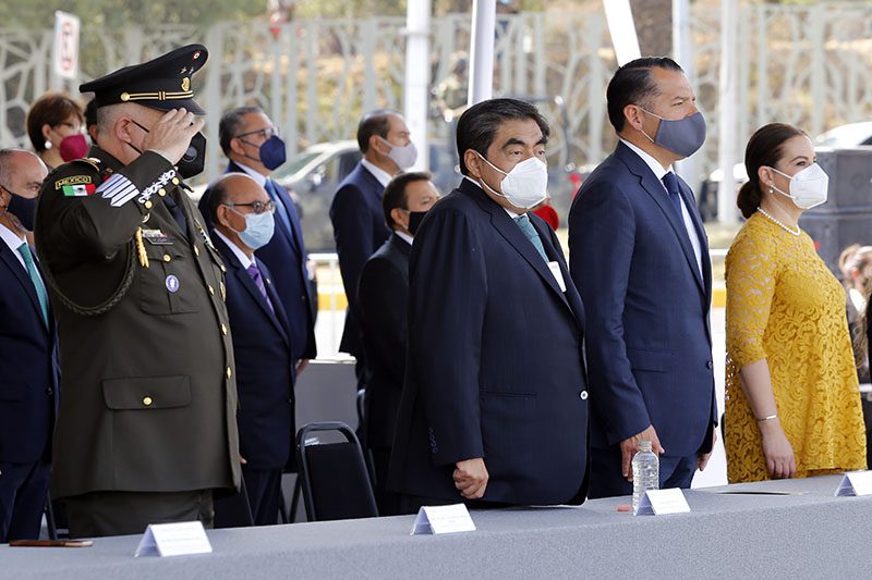 Tras una salva de fusilería a cargo del personal del 9º Regimiento Blindado de Reconocimiento de la XXV Zona Militar, el gobernador Miguel Barbosa Huerta depositó una ofrenda floral e hizo guardia de honor al pie del Mausoleo erigido en memoria al General Ignacio Zaragoza en la zona de Los Fuertes.