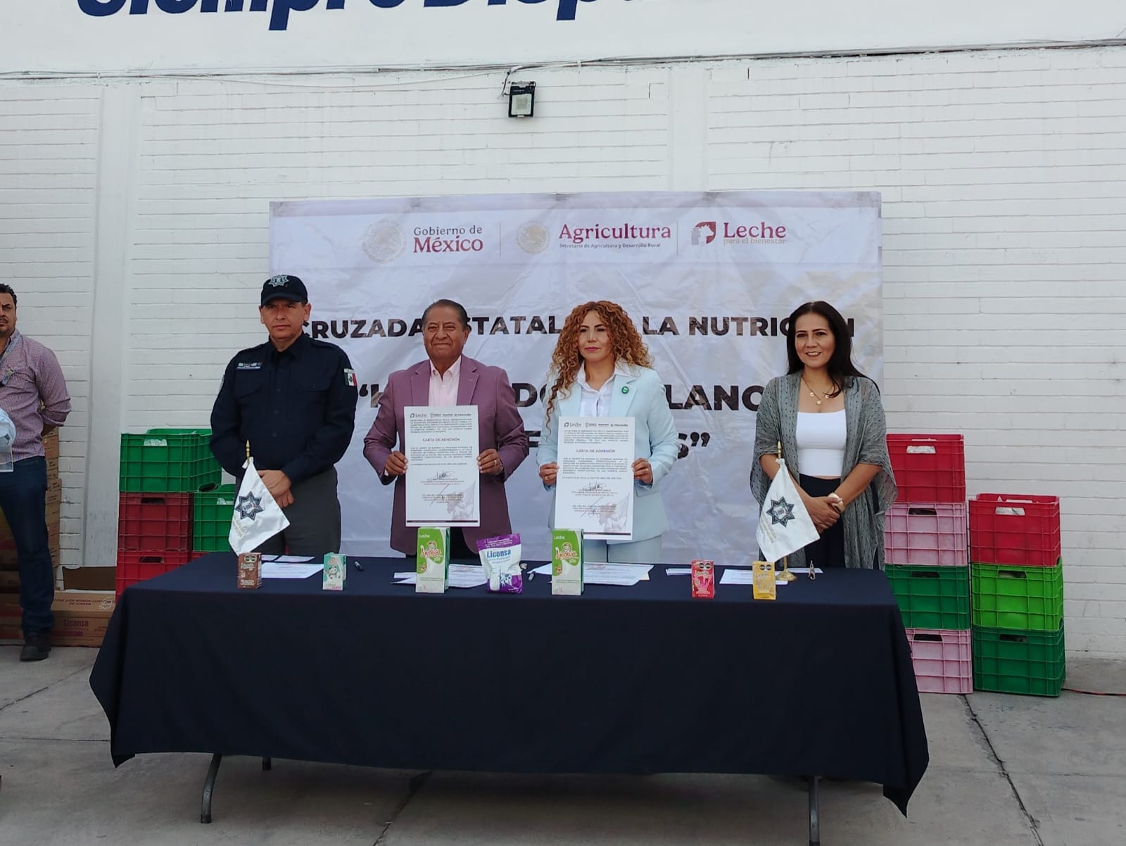 «Este día llevamos a cabo la firma de la carta de adhesión al programa de abasto social de Leche para el Bienestar, en el marco del Día Estatal del Policía(…), de la mano con el Teniente Coronel acercamos este importante beneficio alimentario para atraer justicia social a los más de 3 mil 800 elementos que están dentro de esta corporación», expresó.