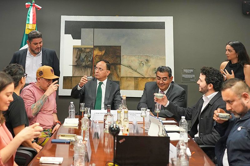 El gobernador Sergio Salomón ratificó su compromiso de generar acciones para mejorar las condiciones de vida de las y los poblanos, así como posicionar al mezcal de Puebla internacionalmente.