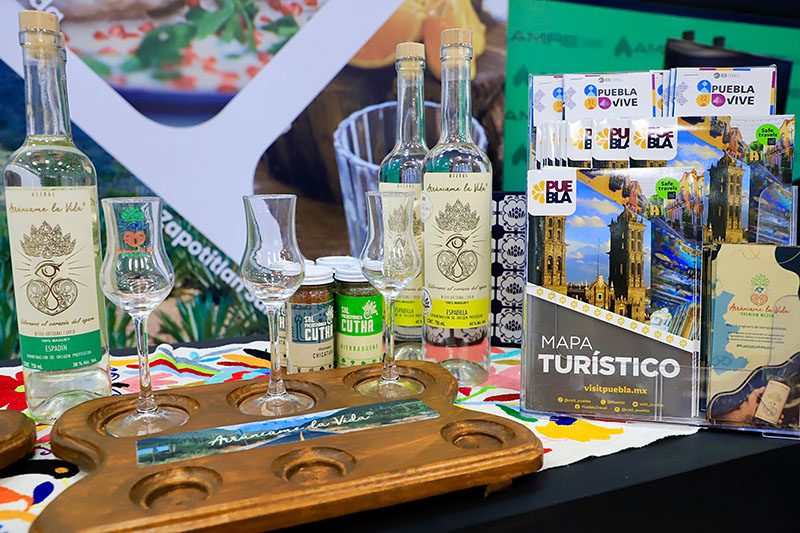 Como parte de las cualidades de Puebla, la delegación expone en la “Sala de Experiencias”, la “Ruta del Mezcal” integrada en tres circuitos y que incluye a municipios como Tehuacán, Zapotitlán Salinas, Caltepec, Atlixco, San Diego La Mesa, Tepeaca, Tecali de Herrera y Huehuetlán el Grande, y en la que la marca “Arráncamela la Vida”, reconocida como uno de los mejores del país por obtener dos medallas de oro en la selección «México Selection by Concours Mondial de Bruxelles 2023» y una medalla de plata en San Francisco World Spirits Competition 2024.