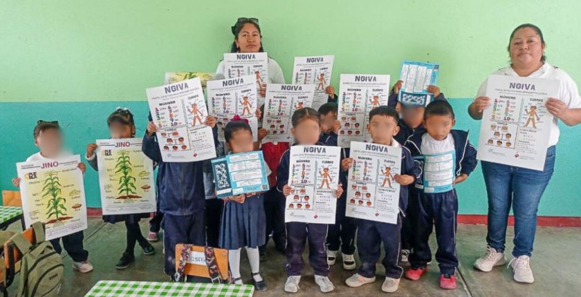 Los materiales proporcionados a través de la Dirección de la Academia de las Lenguas Indígenas del IPPI, constan de carteles sobre la milpa como elemento identitario, carteles didácticos y prontuarios con vocabulario básico, distribuidos a infantes y docentes del Centro de Educación Preescolar Indígena “Josefa Ortiz de Domínguez”.