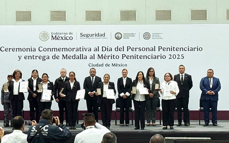 Lo anterior, durante la “Ceremonia Conmemorativa al Día del Personal Penitenciario y Entrega de la Medalla al Mérito Penitenciario” encabezada por el titular de Prevención y Reinserción Social de la Secretaría de Seguridad y Protección Ciudadana (SSPC) y presidente de la Conferencia Nacional de Centros Penitenciarios, Omar Reyes Colmenares.