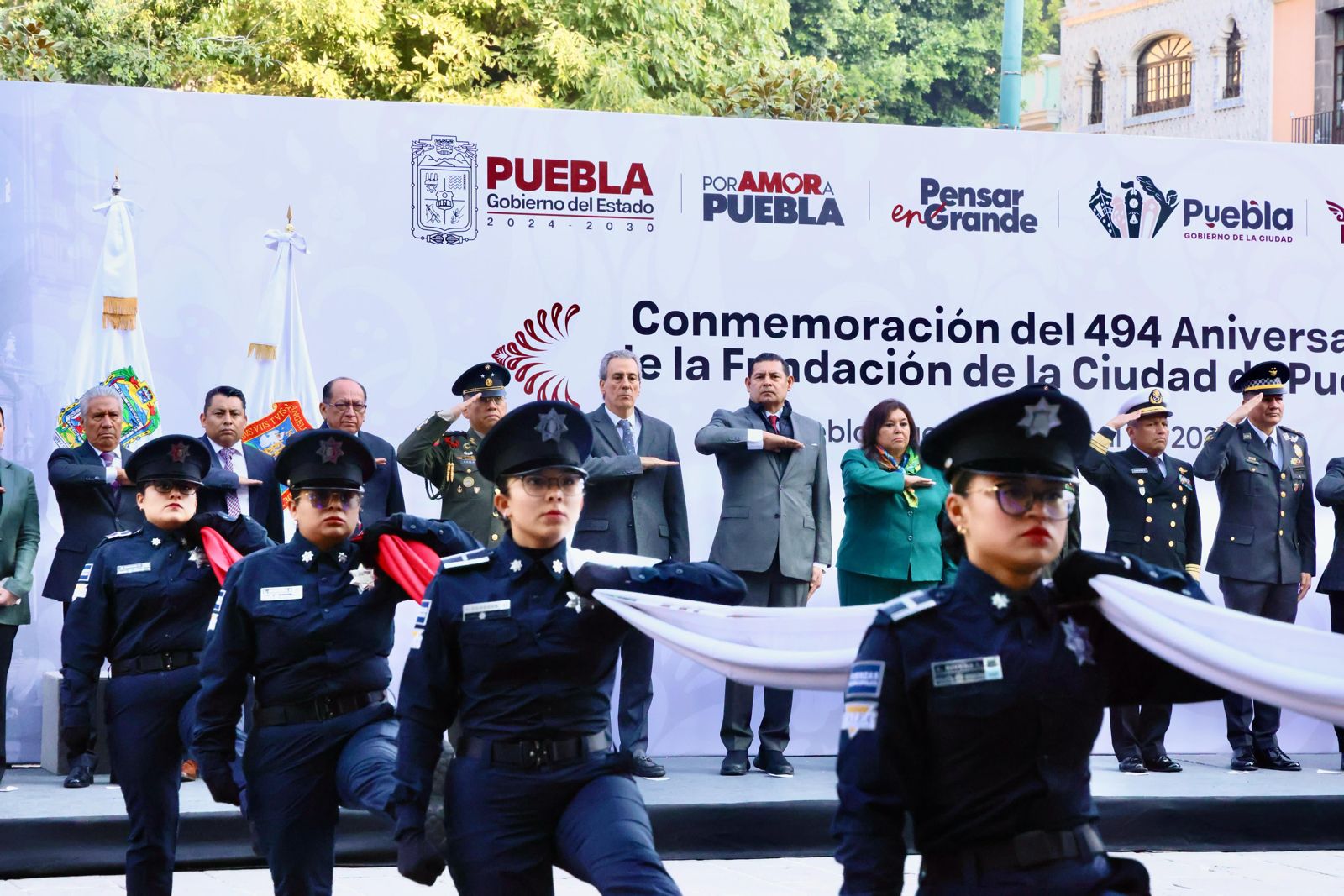 En un acto solemne que reunió a autoridades estatales, municipales, representantes del sector empresarial, del poder judicial y de las fuerzas armadas, el gobernador Alejandro Armenta encabezó la ceremonia conmemorativa por el 494 Aniversario de la Fundación de la Ciudad de Puebla, al destacar el significado histórico de este acontecimiento y su proyección hacia el futuro.