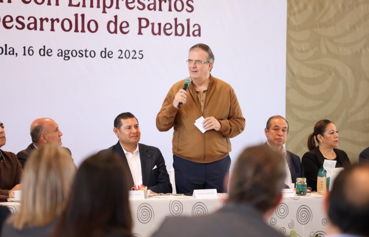 El secretario de Economía del Gobierno Federal, Marcelo Ebrard presentó ante las y los empresarios poblanos el modelo de Polos de Desarrollo Económico para el Bienestar que impulsa el Plan México de la presidenta Claudia Sheinbaum.