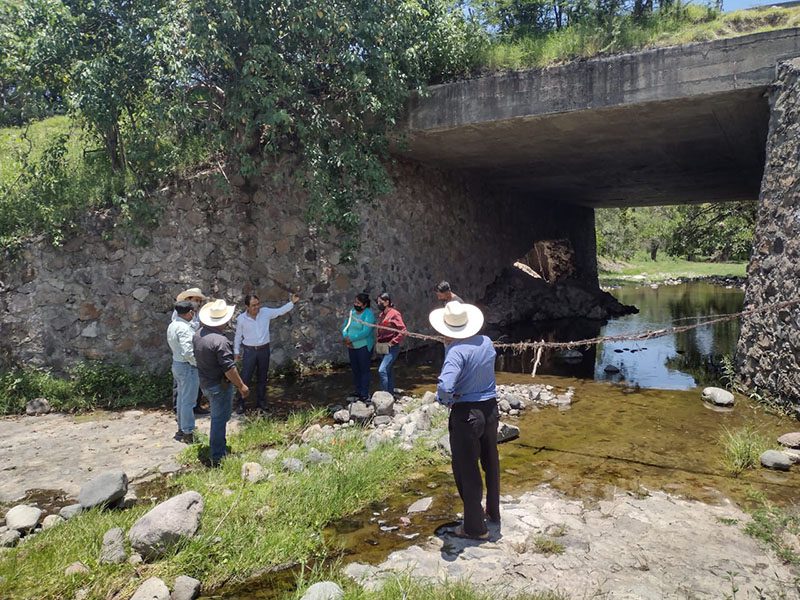 Aunado a la reparación del puente, la Secretaría trabaja sobre el cauce del afluente del río Tetlillo, retirando lodos y piedras para mantener el flujo sin obstrucciones.