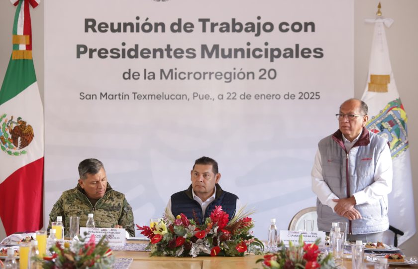 El gobernador Alejandro Armenta se reunió con presidentas y presidentes municipales de la microrregión 20, con el objetivo de que se reorganicen los 3 órdenes de gobierno, en torno a la directriz del humanismo mexicano de la presidenta Claudia Sheinbaum.