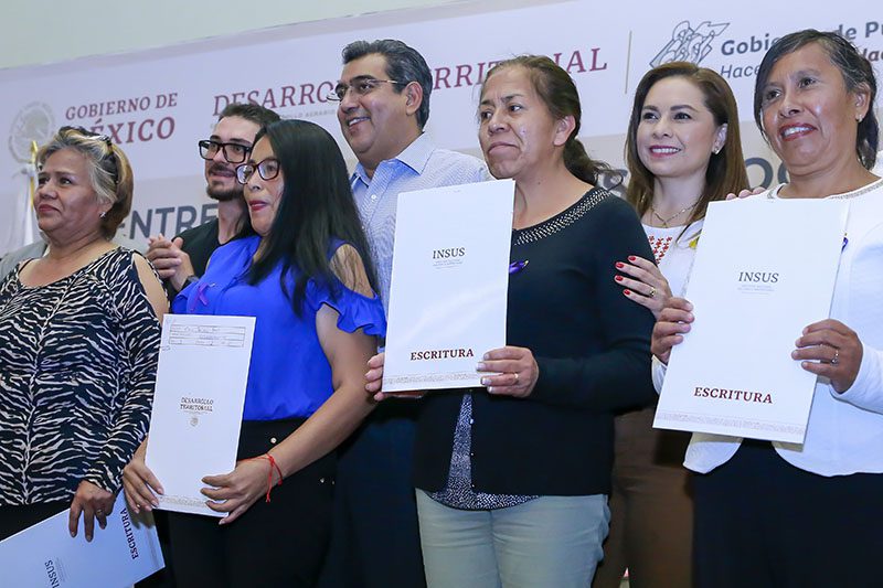 También asistieron las titulares de las secretarías de Desarrollo Rural, Ana Laura Altamirano Pérez, y Economía, Olivia Salomón; la secretaria general del Ayuntamiento de Puebla, Silvia Tanús Osorio, así como el alcalde capitalino, Eduardo Rivera Pérez, quien resaltó que la administración municipal hace equipo con el gobierno estatal y la federación para beneficiar a mujeres que por años han luchado por tener certeza jurídica en su patrimonio.