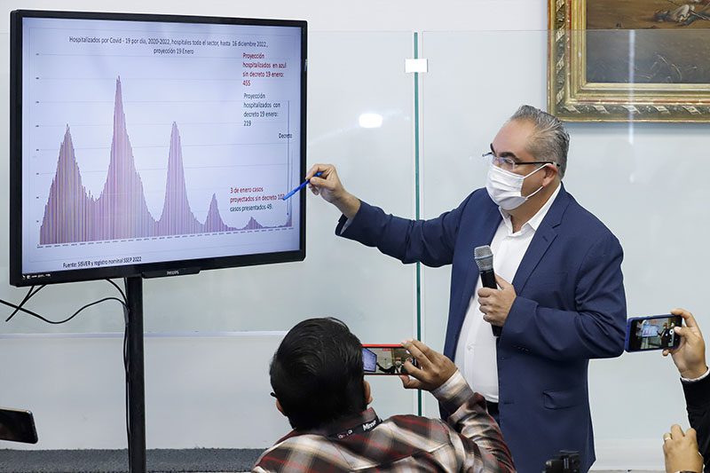 En conferencia de prensa encabezada por el gobernador Sergio Salomón Céspedes Peregrina, el titular de la dependencia explicó el comportamiento epidemiológico de la quinta y sexta ola de contagios, por lo que hizo hincapié en que las políticas públicas y acciones en materia de salud que el Gobierno del Estado implementa son eficientes y eficaces para romper con la cadena de transmisión del virus.