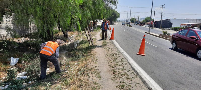 Con cuadrilla de trabajadores, la Secretaría de Infraestructura intervino el tramo carretero Quecholac-Francisco I. Madero en los kilómetros 0, 800, 1+600 y 2+100 donde fueron extraídos desechos de basura, hierba, lodo en cunetas y área de rodamiento.