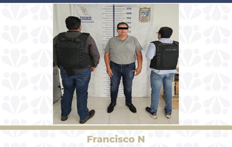 Por su probable responsabilidad en la comisión de los delitos de cohecho y concusión, la Fiscalía General del Estado dio cumplimiento a la orden de aprehensión en contra de Francisco N., quien se desempeñaba como agente del Ministerio Público de la Fiscalía Especializada en Investigación de los Delitos de Desaparición Forzada de Personas y Desaparición Cometida por Particulares.