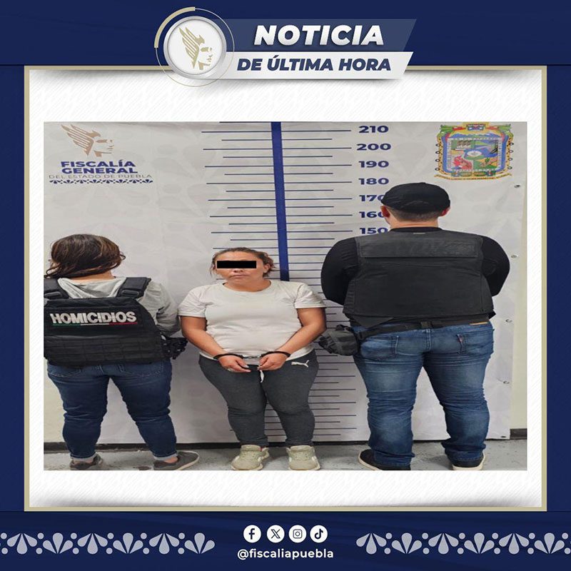 La Fiscalía General del Estado dio cumplimiento a la orden de aprehensión en contra de Diana Gabriela N., alias “La Güera”, de 33 años de edad, como probable responsable del delito de homicidio calificado en agravio de un hombre, en Chilac, Tehuacán.